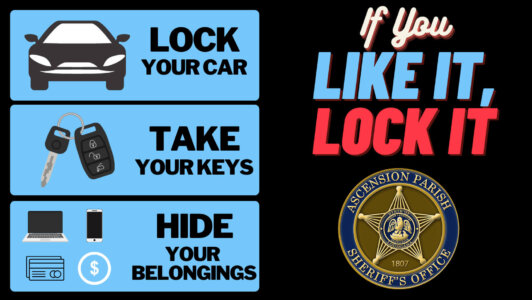 Sheriff Bobby Webre and detectives with the APSO Property Crime’s Unit want to remind all of our residents to lock your car. It is not uncommon to see an uptick in vehicle burglaries during the holidays, especially as you stock up on gifts.