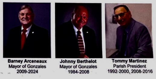 2015: Four-term Ascension President Tommy Martinez (l) with two long term Gonzales mayors (Barney Arceneaux and Johnny Berthelot)