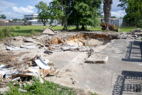 As of Thursday afternoon, the demolition is complete along with preliminary repair of the failing drainage servitude.