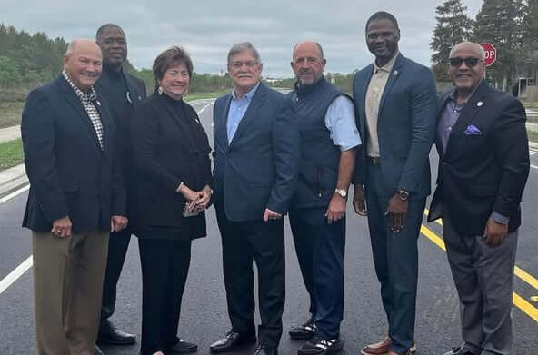 Councilman Boudreaux, with future mayor Tim Riley and other officials commemorating completion of St. Francis Parkway extension Phase I (November 2023)