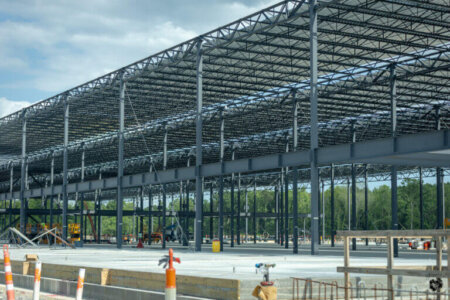11 phases of concrete slab having been completed, steel is going up