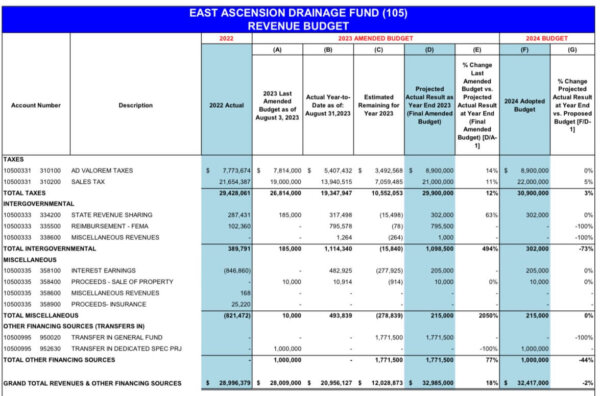 Public misunderstanding of drainage works in East Ascension Parish is not a new phenomenon.  Every parcel east of the Mississippi River is subject to the 5-mill ad valorem tax assessment funding EA Drainage Commission on top of its perpetual 1/2% sales and use tax.  Combined, the assessments are anticipated to generate $30.9 million this year.