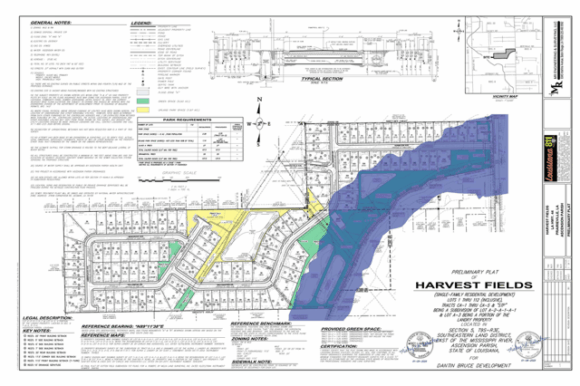 Dantin Bruce Development’s Ross Bruce proudly proclaimed that his firm has built over 1,000 homesites in Ascension Parish over the years, hoping to add another 115 to the total at Wednesday’s meeting of the Planning Commission. It was not to be as five commissioners, with two abstentions, voted to reject Harvest Fields subdivision preliminary plat, oblivious to staff recommendations lobbying for approval. And this time Dantin Bruce is unlikely to find a friendly Parish Council to which it might appeal the denial (who remembers Oak Grove Townhouses way back in 2017).